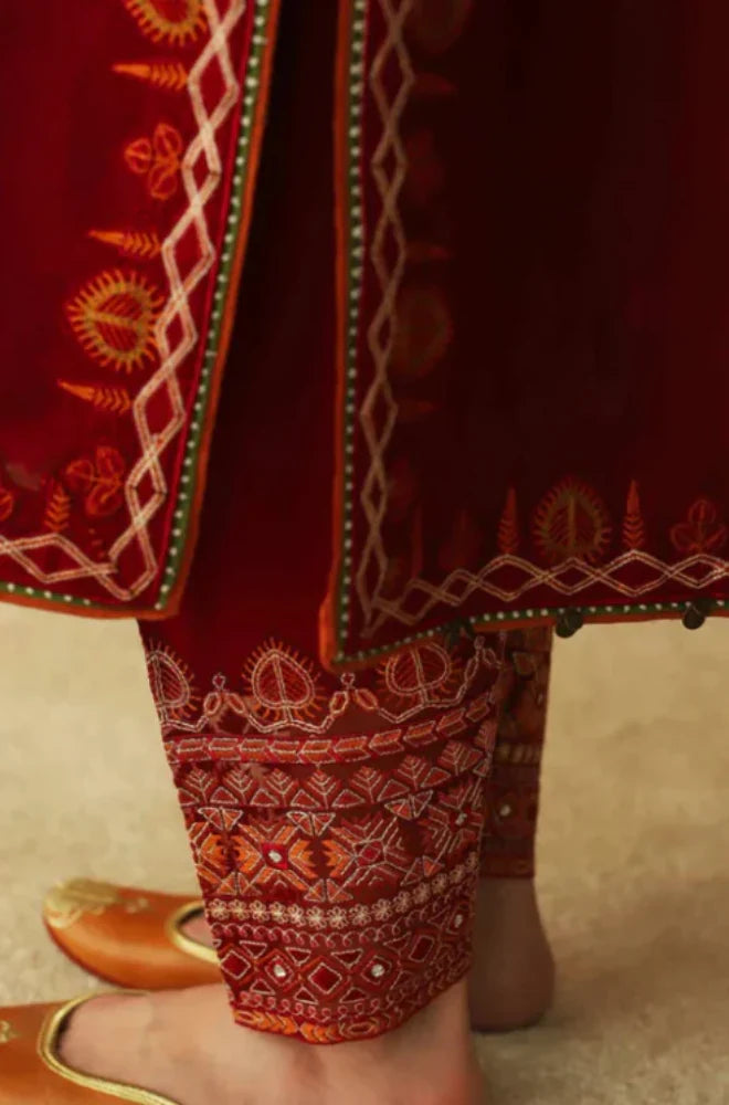 Front Embroidery: Fully embroidered with intricate artistry, radiating refined elegance.