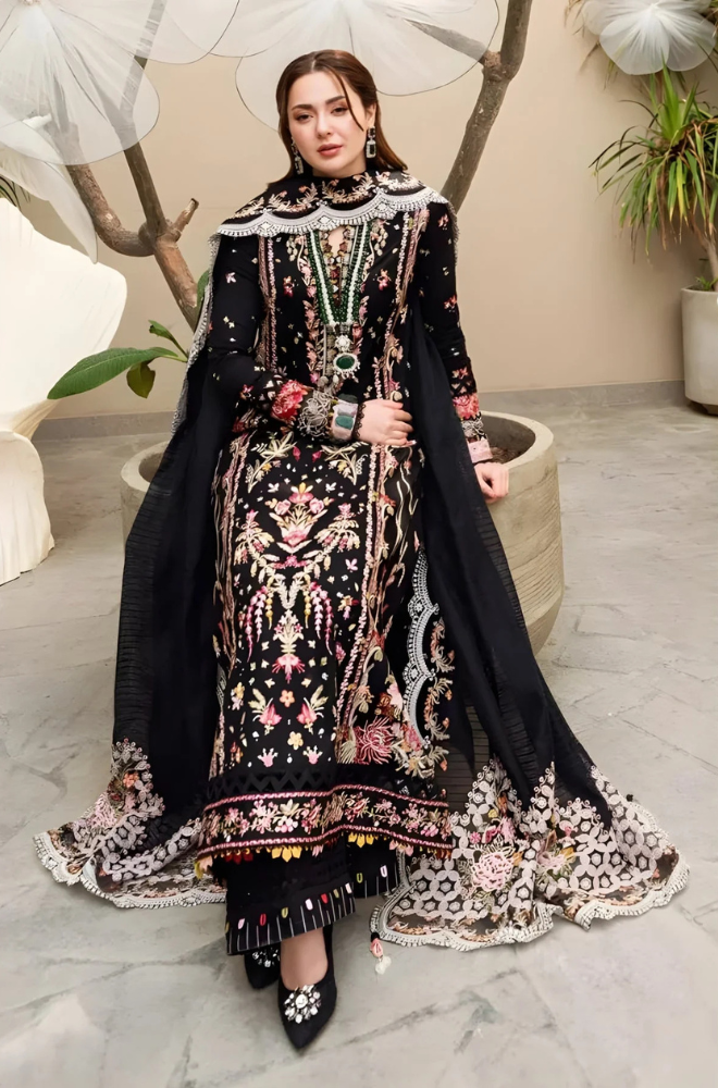 3PC Unstitched Lawn Embroidered Shirt with Embroidered Slub Net Dupatta - RC 1018